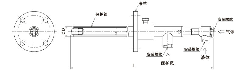 外形圖 附帶保護(hù)管·法蘭連接